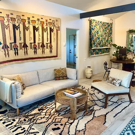 Santa Fe Modern Farmhouse 1 Acre Private Rd Soaking Room 3 Min Canyon Rd villa includes an equipped kitchenette, as well as an outdoor dining area for self-catering. The kitchen also offers a toaster, an oven, and a cooktop. Guests have access to café Museum Hill Cafe, situated within reach of the property.